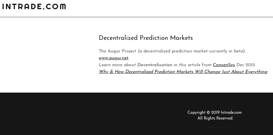 PMs are also in themselves the subject of academic interest and research and there’s a good deal of academic involvement in Augur’s Forecast Foundation (notably Robin Hanson, known for overcomingbias.com and the idea of futarchy governance, among other things), making it one of the few projects that give rogue crypto-economic networks of circulating value (a.k.a. “crypto-currencies”) some much needed legitimacy. And while to some this may on the surface seem just like “a glorified betting platform”, it must be remembered that it was only relatively recently in history that a difference between market speculation, trading, investment, and gambling was made (the history of finance as such being remarkably mad and irrational in itself).