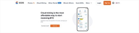 Ecos, launched in 2017, is a comprehensive cloud mining platform that also offers investment tools for portfolio management. Based in Armenia, Ecos benefits from access to low-cost electricity, which helps maximize profitability for its users. The platform uses ASIC mining technology to provide efficient mining solutions, and it is known for its transparent pricing and reliable service. With over 40,000 users globally, Ecos has gained a reputation for its user-friendly platform and steady payouts. ROI ranges from 15% to 20% annually, depending on the contract selected, and the minimum investment is $50, making it a competitive option for both beginners and experienced miners.