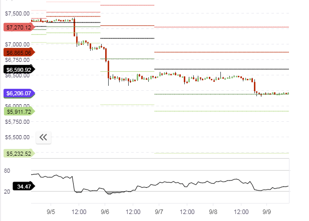 Intraday traders will find focus from the pivot points. Presently, we see that the price action of BTC/USD is trading directly on the S1 pivot $6,205. Price is also limited to the upside by the central pivot point at $6,450. It is therefore likely that price action for the day will be capped at the central pivot, which will represent a good place to sell on rallies.