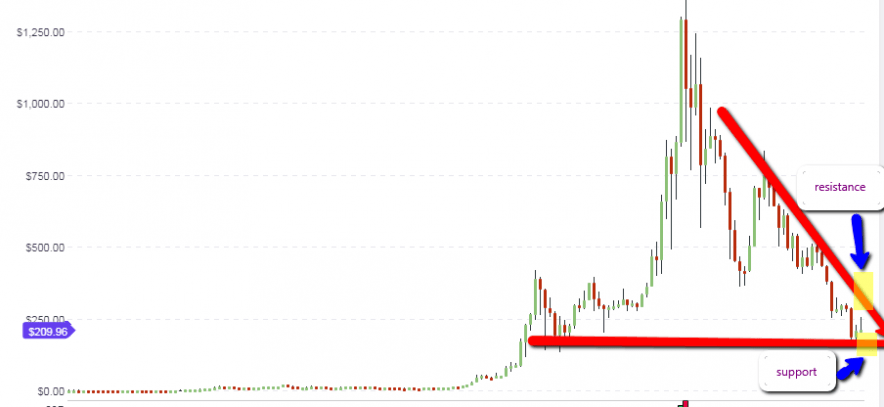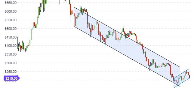 The price moves on the daily chart show that ETH has started the week lower, having been rejected at the upper trendline of the downward channel that has been seen on the daily chart. However, a smaller upside channel has also formed. These channels continue to remain relevant in the medium term price analysis of ETH. It is expected that ETH prices may bounce off the lower trendline of the minor upward channel.