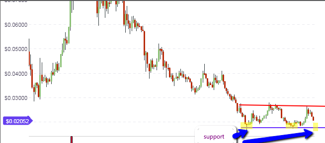 The long-term chart for TRX/USD shows that the pair has broken out of the long-term falling wedge seen on the weekly chart. The current weekly candle is presently trading lower, which conforms to the expectation that the price action may attempt a pullback to the broken trendline, where it is expected that the upper trendline of the falling wedge will provide support for continued upside.