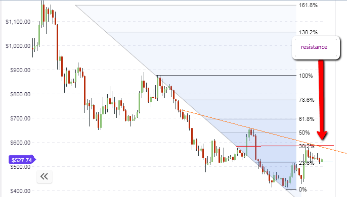 To further buttress the significance of the $530 price area as a resistance that has to be overcome for further upside to be seen in the price of Bitcoin Cash, we use the Fibonacci retracement tool to derive the various price retracement levels. These can be seen on the chart below: