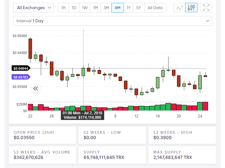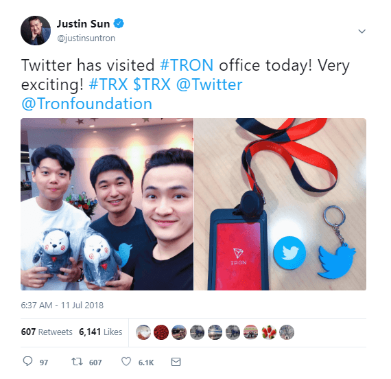 Tron’s founder, Justin Sun, recently tweeted that Twitter delegates had visited the Tron office, which he said was “very exciting”. Keep an eye out for any announcement regarding these two companies as this would give price a very strong boost and maybe be the catalyst for those higher levels.