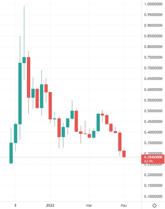 Cronos is on a longer-term downward move after the project saw highs near $1.00 last year on the announcement of an expensive sponsorship deal of Staples Center.