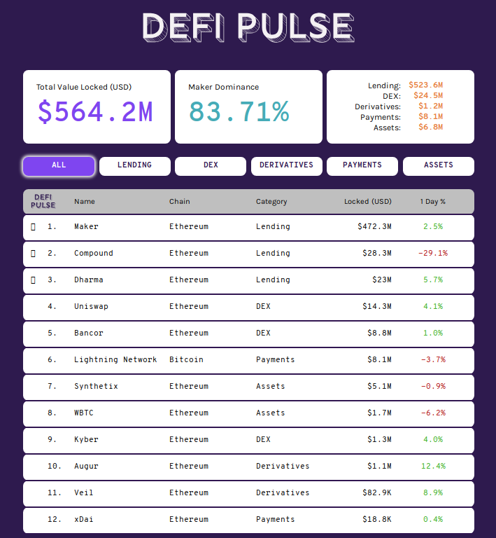 DefiPulse.com, the Coinmarketcap of Ethereum DeFi dApps, by Concourse.