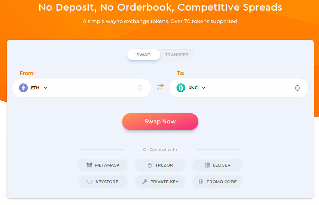 Kyber doesn’t use order books but returns the best available price across all reserves. The most common way of accessing the Kyber Network is through KyberSwap, a decentralized exchange dApp that uses on-chain matching to instantly swap tokens.