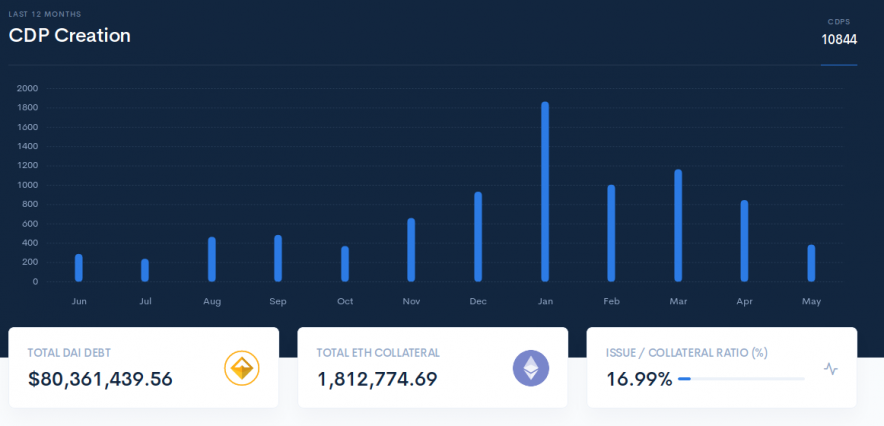 MakerDAO, which we covered previously, is the decentralized credit platform on Ethereum that supports and manages Dai (also one of the oldest Ethereum dApps and DAOs, alongside other Ethereum household trademarks like Augur). Dai is the least controversial and most transparent stablecoin whose issuance and peg to the US dollar are driven by Collateralized Debt Positions (CDPs, contracts that lock one’s ETH in exchange for an amount of Dai for up to a certain percent of the value of the ETH staked, since Dai need always be overcollateralized for obvious reasons) and maintaining system parameters within an accepted range in regards to market dynamics, forces of supply and demand, volatility and price fluctuations. In that respect, Maker can be thought of also as a kind of a nascent volatility insurance platform and a prediction market focused on protection against a handful of specific types of events.