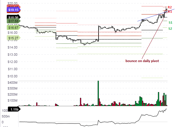 So what should the day traders be doing? We can see that the price action has taken a huge jump from the daily pivot mark and is presently approaching the R2 pivot.