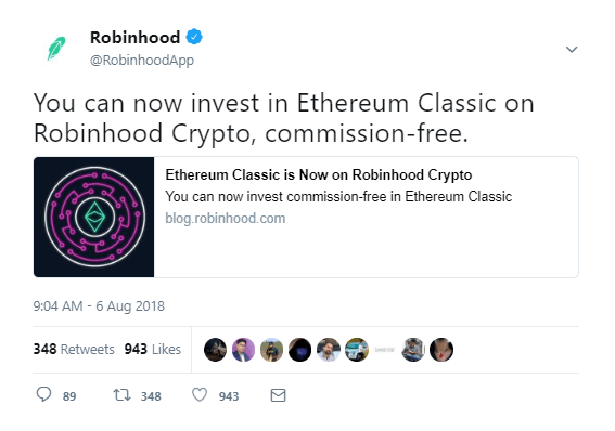 In other news, the ETH fork known as Ethereum Classic is experiencing a resurgence, buoyed by the recent announcement of the listing of this coin by both Coinbase exchange as well as the Robinhood crypto trading app.