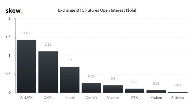 Data from cryptocurrency monitoring group skew shows that open interest in BTC futures contracts is over $4 billion. This is a sign of growing institutional and speculative interest in Bitcoin and as open interest grows, the potential for short-covering rallies grows if short positions build above key levels such as $10,000.