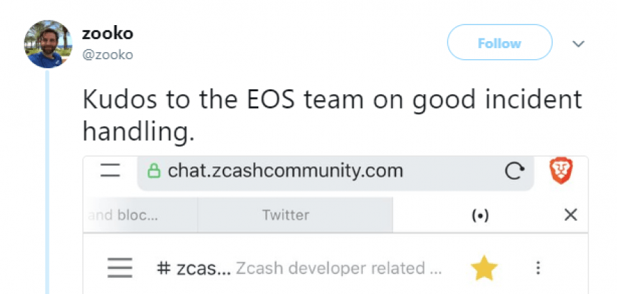However, one notable supporter comes in the form of Zcash founder Zooko Wilcox, who congratulated the team for the quick response.