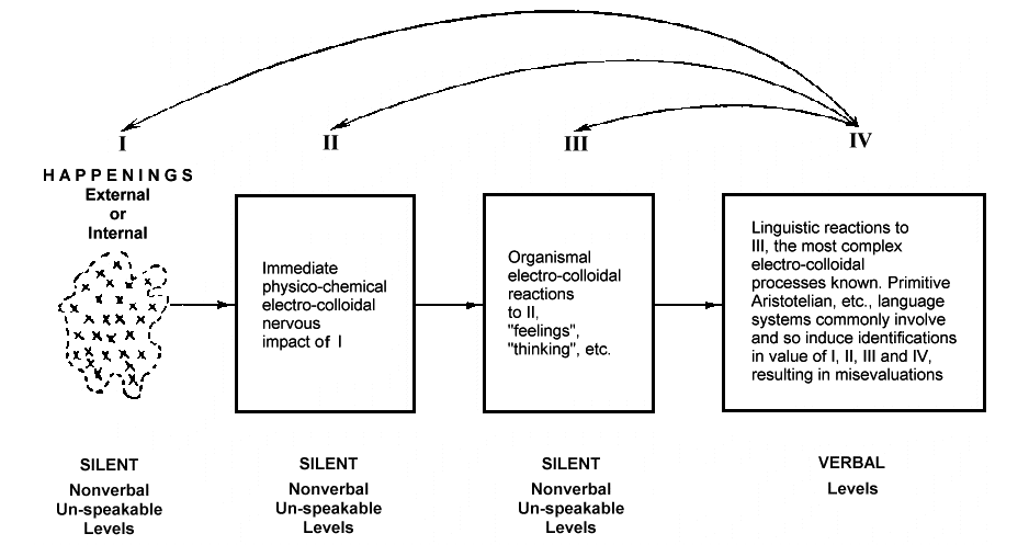 Meanwhile linear-sequential phonetic alphabet writing is in itself devoid of any meaning (the letter corresponds to a sound, not a thing) and its syntactical structure and grammar already presupposes a kind of common sense world order and axioms which all too often don’t adequately square with reality in representing actual states of affairs in the world as they tend to take place, and as such are largely the reason for many habitual logical fallacies, paradoxical beliefs, creeping biases, and falsely stated composites in how we understand and conduct ourselves, engage in discourse, examine things, formulate argumentation, and reach conclusions.