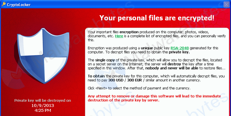 The most famous type of ransomware was CryptoLocker, which was distributed between 2013 and 2014, and which demanded payment in Bitcoin.
