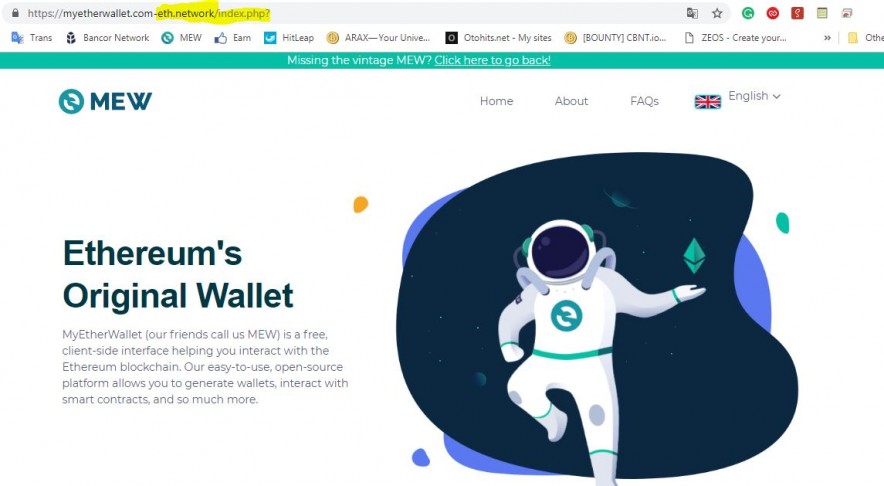 This type of attack is called “phishing.” Below is one example of a phishing attack, in which attackers cloned a real website (MyEtherWallet) and hosted it at a fake URL.