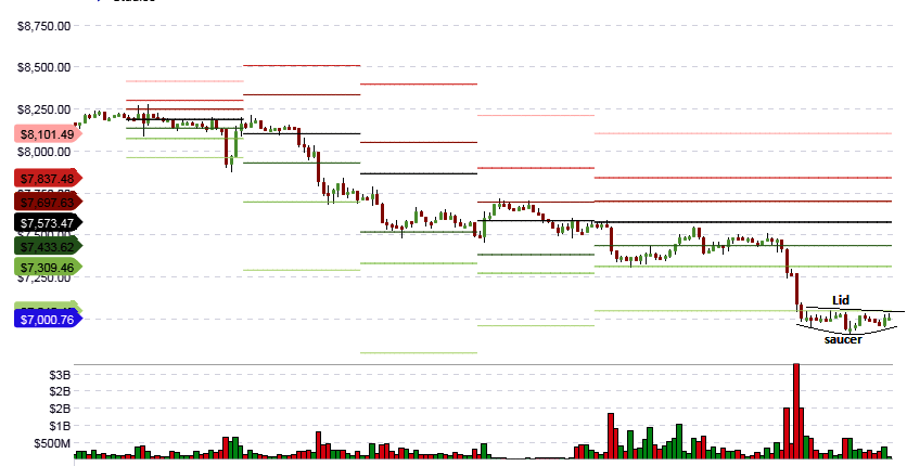 Price may be contained within this saucer until the picture on the daily chart is resolved. Day traders are therefore advised to only trade an upside break of the lid of the saucer if the price bounces at the April 2018 support area on the daily chart.