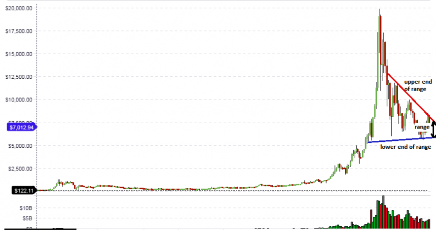 BTC/USD continues to fulfill the long-term expectations on the weekly chart. As identified in the last analysis for this pair, the long-term weekly chart showed a symmetrical triangle pattern whose borders will constitute the trading range for this pair. The price is presently on a downward move from the upper trend line and is heading towards the lower end of the range at the lower trendline. This range trade setup is expected to continue in the long term, pending any major news for the BTC/USD pair.
