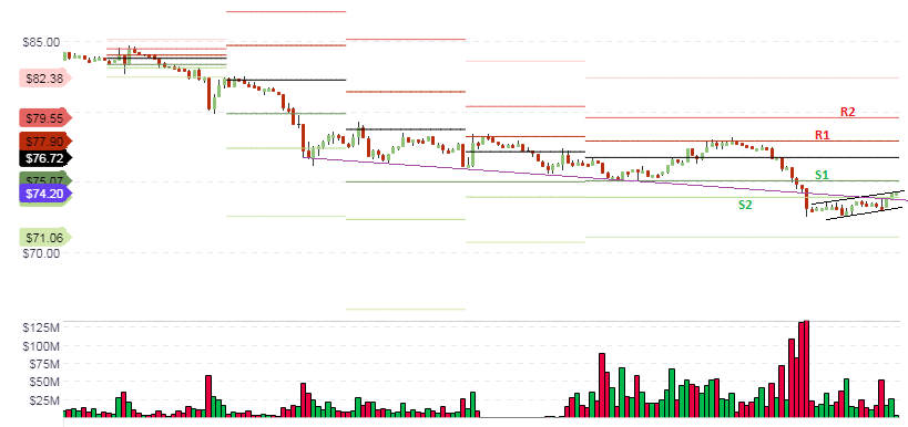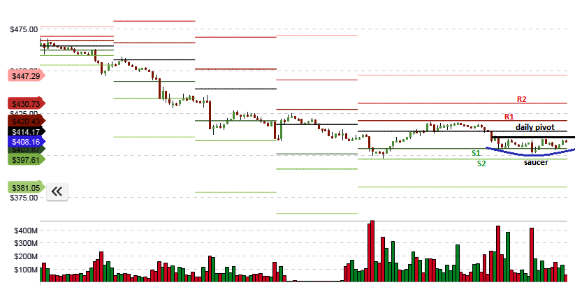 The medium-term outlook now shows the way as to what the intraday traders should do for today. Price has broken through all the support pivots but seems to have found support courtesy of a brief upside reversal saucer pattern.
