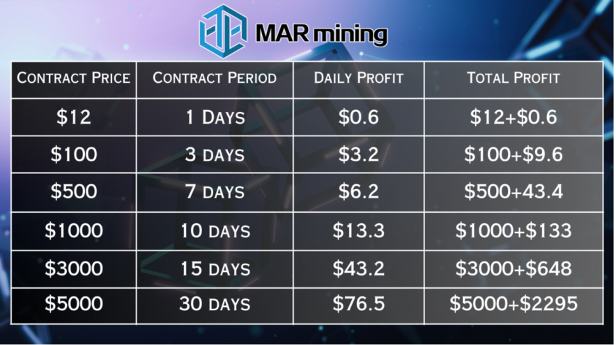 MAR Mining Custom Cloud Mining Contracts: