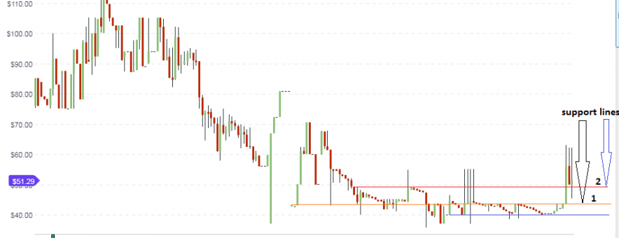 In our last analysis piece, the key price levels for DCR were identified. The price action chart shows that on Wednesday, prices retraced to the support line (marked as 2) found on the $49 level. This was a previous resistance seen in September which was broken to the upside. This price served to provide support for subsequent price action, which as at this morning, pushed upwards to the $62.50 mark. This price level was seen as a previous support for prices way back in July 2018, but having been broken to the downside on a later date, is now performing a role reversal as a resistance point. This price level has been tested three times this week and has held well.