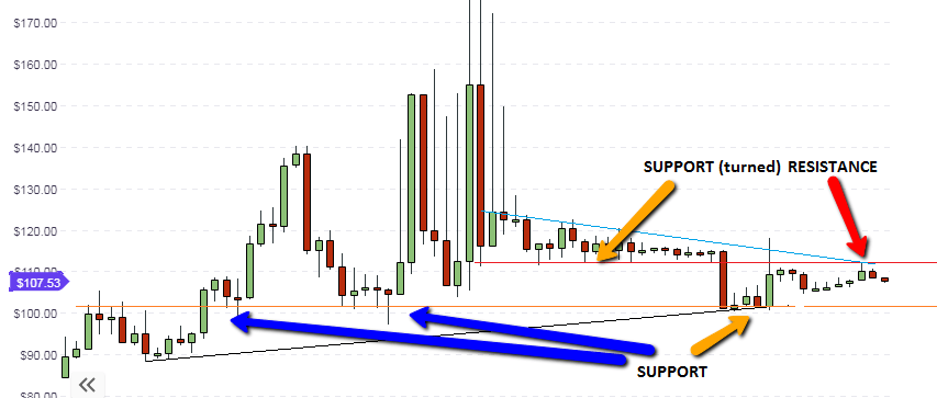 Monero posted a strong start to the week, pushing itself to $111 in Tuesday’s trading session. However, it hit a roadblock at that level, which is an area where price had found support and is now performing a role reversal as a resistance area. We also see that the descending trendline resistance that connects the highs of the last two months intersects with this line, thus providing additional strength in resisting further upside price action.