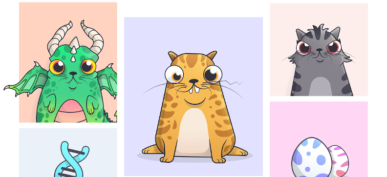 NFTs were first created in 2017 with the introduction of Crypto Kitties. This line of cryptocollectibles features virtual pets: each token contains a unique cartoon cat, randomly generated through a lottery. Owners are able to trade Crypto Kitties for profit.