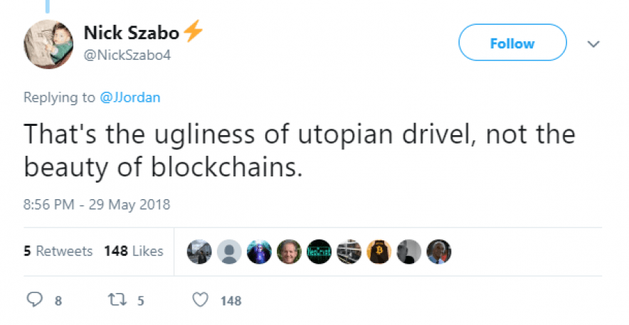 Szabo’s comments were meant as a response to a series of tweets by @panek, about the EOS project’s shortcomings.