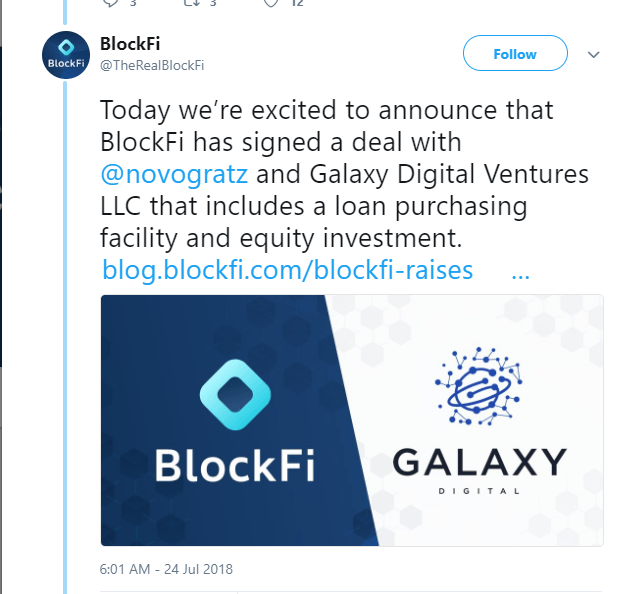 We’re excited to partner with BlockFi and jointly lead the way for financial institutions to participate in crypto investing strategies. A robust lending market is the keystone for financial systems and BlockFi’s institutional approach and deep lending expertise were key drivers in our decision to partner with them. /Mike Novogratz