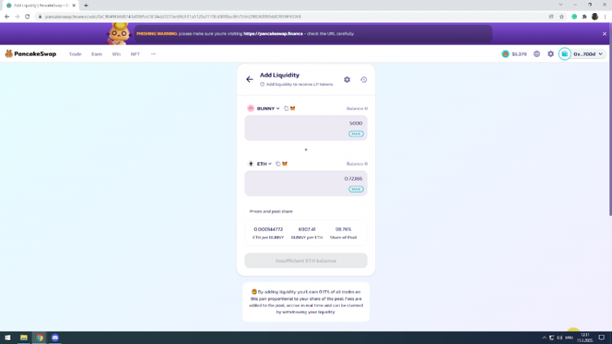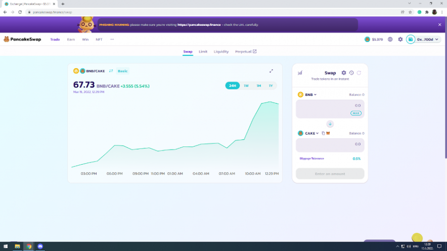 Pancakeswap sports a much better user interface. As you can see there is a graph added at the swap pair, plus the links to the liquidity pool section.