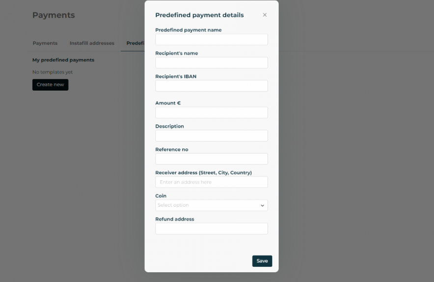 Thanks to Predefined Payments, the user no longer needs to waste time and fill in the same data for the payment