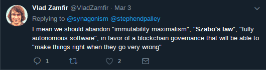 Vlad Zamfir: Against Szabo’s Law, For A New Crypto-Legal System. Putting the Doctrine of Immutability in Question.