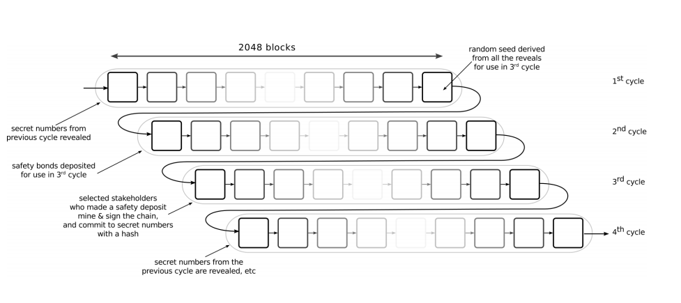 Tezos refers to this staking process as “baking”. In this model, bakers commit deposits and are rewarded for signing and publishing blocks. Baking is the action of signing and publishing a block and each block “baked” (or produced) by a random stakeholder is further notarized by the other 32 randomly picked stakeholders.