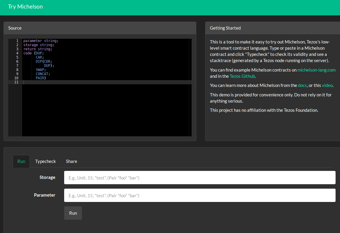Tezos implements a smart contract language inspired by OCaml called Michelson, which is customized for business logic and modularity in implementing it as needed, in different pieces (rather than a generic “world computer” for running dApps, as the case with Ethereum). Michelson is low-level, stack-based and strongly typed, designed to facilitate formal verifications – allowing users to prove the properties of their contracts before deploying or executing them.