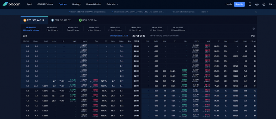 Based in Amsterdam, Netherlands, Deribit is one of the largest crypto options trading platforms in 2022. Offering the European style options trading which means they can only be used at expiration, and not before, Deribit offers lower reduced fees for market makers.