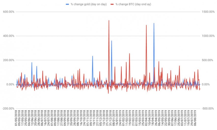 There is a strong correlation between the price of Bitcoin and the trade war between the US and China. The reason for this correlation stems from the perception that Bitcoin is a type of “Digital Gold”, or a “Store-Of-Value” thanks to its scarcity and isolation from central banks and national economies. Since the beginning of the trade conflict in May 2019, Bitcoin trade volume has risen over 200% when compared to the same time period in 2018. This increase in BTC trade volume mirrors a 73% increase in gold trade volume, indicating the US/China trade war is pushing investors towards both assets as economic uncertainty rises globally.