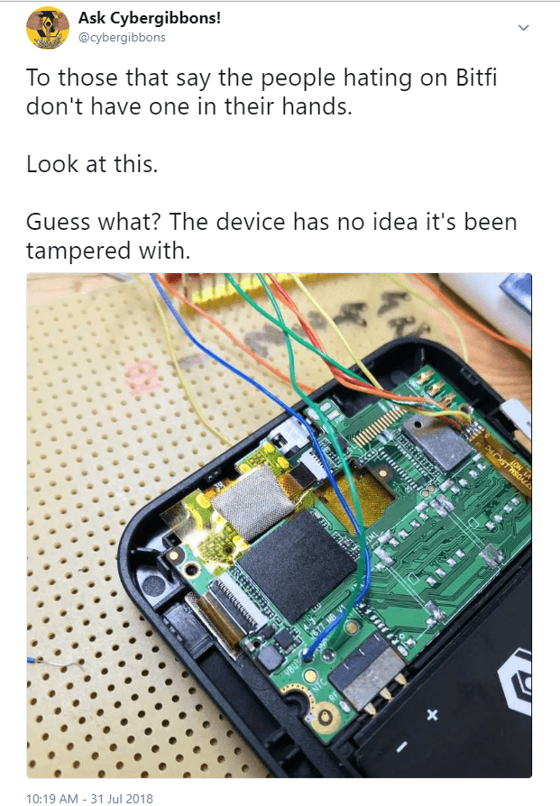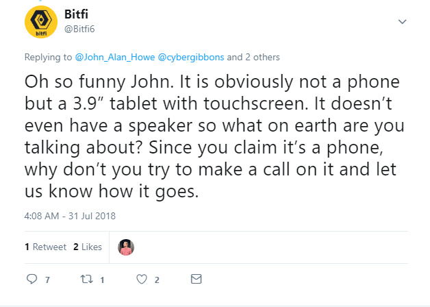 Bitfi hasn’t been silent all this while either. The company’s official Twitter handle was seen responding to one individual pointing out that the device was a stripped down phone in the following way,