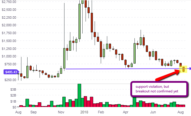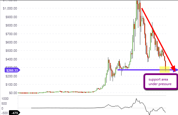 Ethereum has taken a battering this week, with prices taking out the $358 support level and now at the point of violating the next major support at $290. However, the weekly candle is yet to close, so it is presently unknown if prices will close below this support or go back above it.