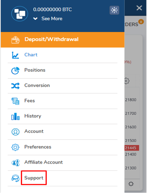 Click on the menu button in the upper right part of the site, and in the pop-up panel on the left, select Support at the bottom.