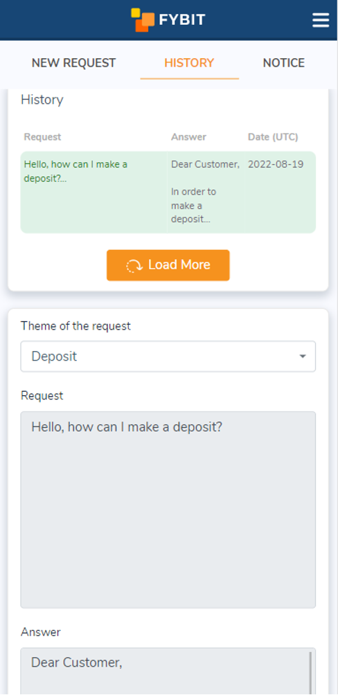The customer support staff of the FYBIT trading platform consists entirely of active experienced traders. See our guide to using the platform.
