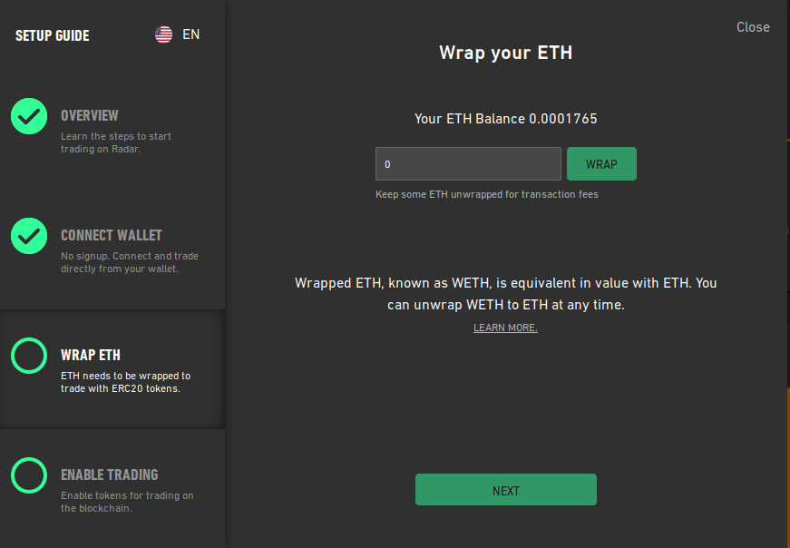 “Wrapping” ETH really means exchanging it for an equivalent amount of WETH via a smart contract, while “unwrapping” it back to plain ETH means exchanging it back again (the smart contract instituted on the immutable ledger acting as a sort of back and forth vending machine). WETH is usually acquired via Radar Relay or 0x Portal through the provided interfaces there. Wrapped Ether (WETH) and its contract code can be seen on-chain on etherscan.io and a version of the Solidity code is also available on Github.
