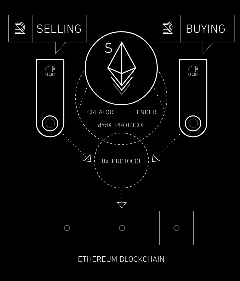 – the remainder from the difference. The dY/dX protocol makes use of 0x channels for decentralized off-chain exchange. Lenders sign a message in which they offer loans which are aggregated and listed on other platforms (both on-chain and off-chain).